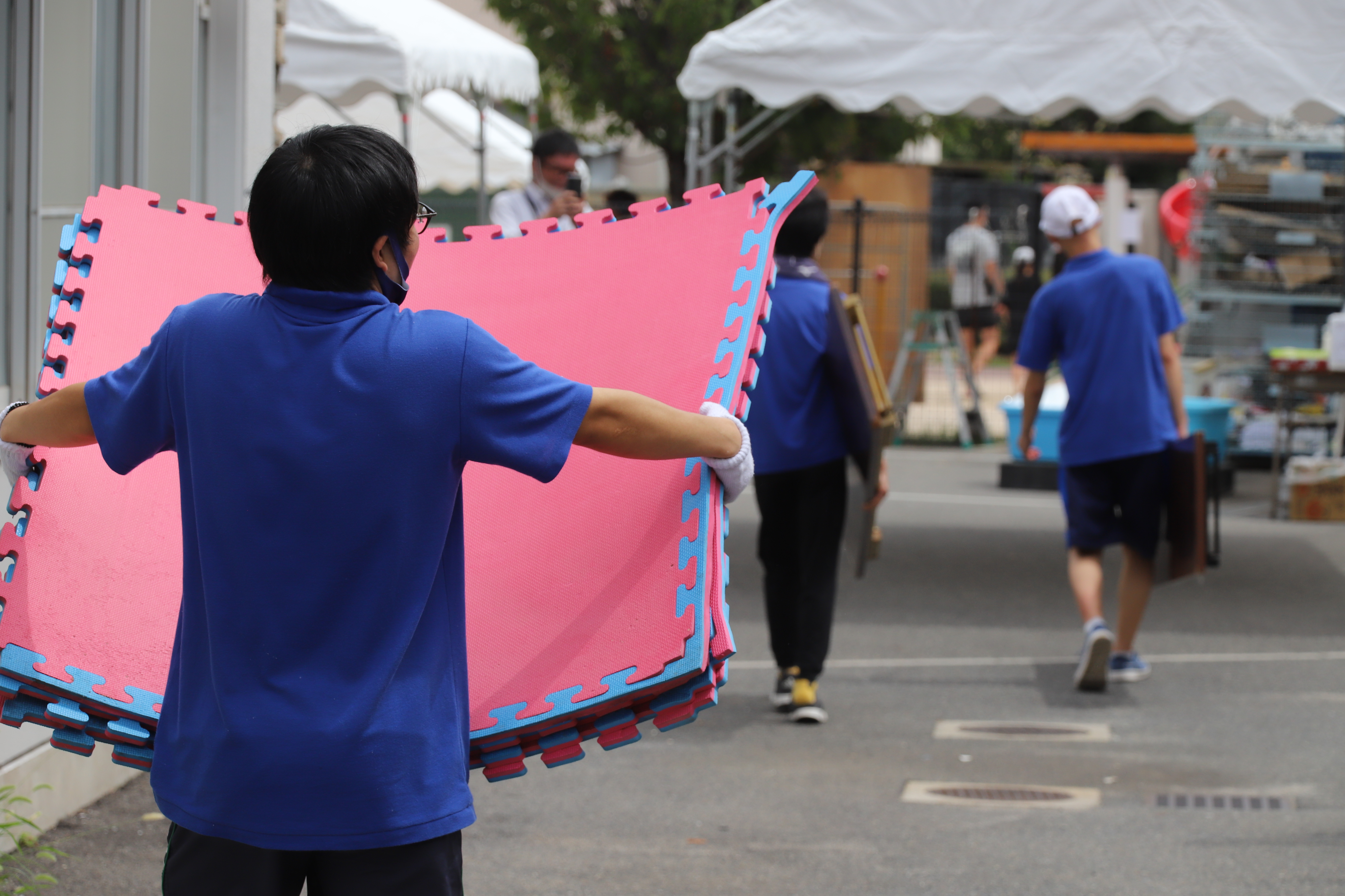 準備の段階では設営のためテーブルを運んだりお祭りの雰囲気を演出するために提灯を取り付けます。
