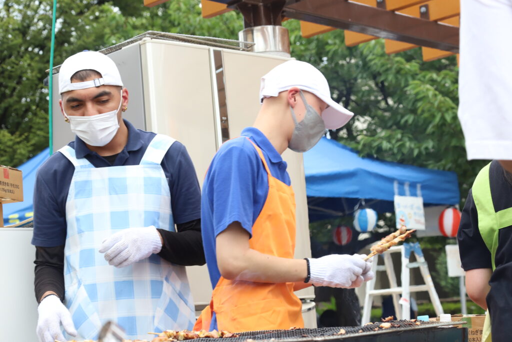 お祭りが始まるとたこ焼き屋さん、焼き鳥屋さん、美化係、支援する係に分かれれ役割をこなします。